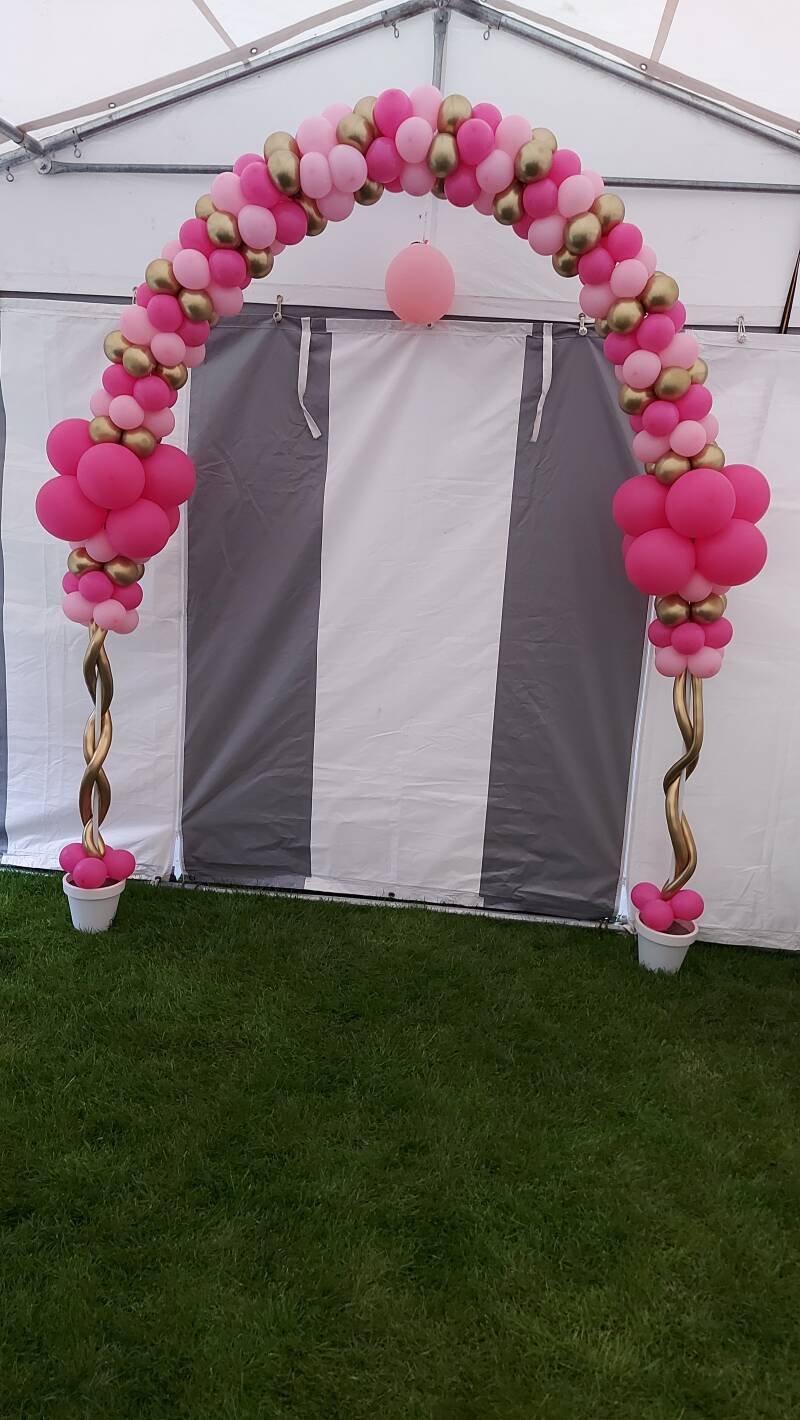 Trouwfeest versierd met ballonnen op staander en tafeldecoratie