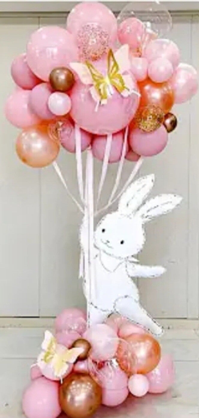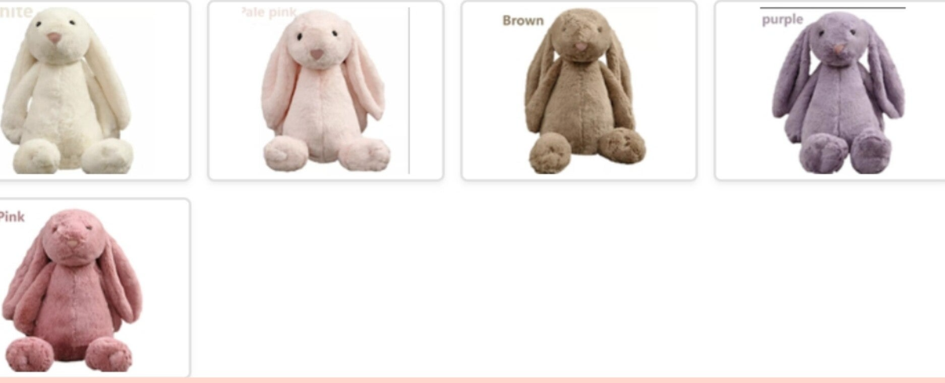 Konijntje in roze, licht roze, wit, bruin, paars.