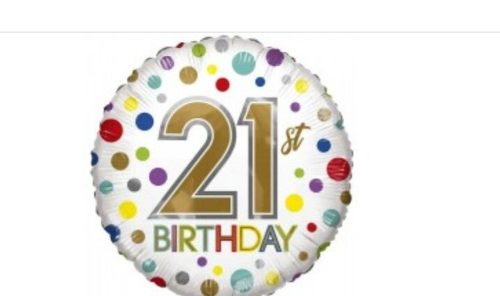Folieballon cijfer "21" kleurenbolletjes