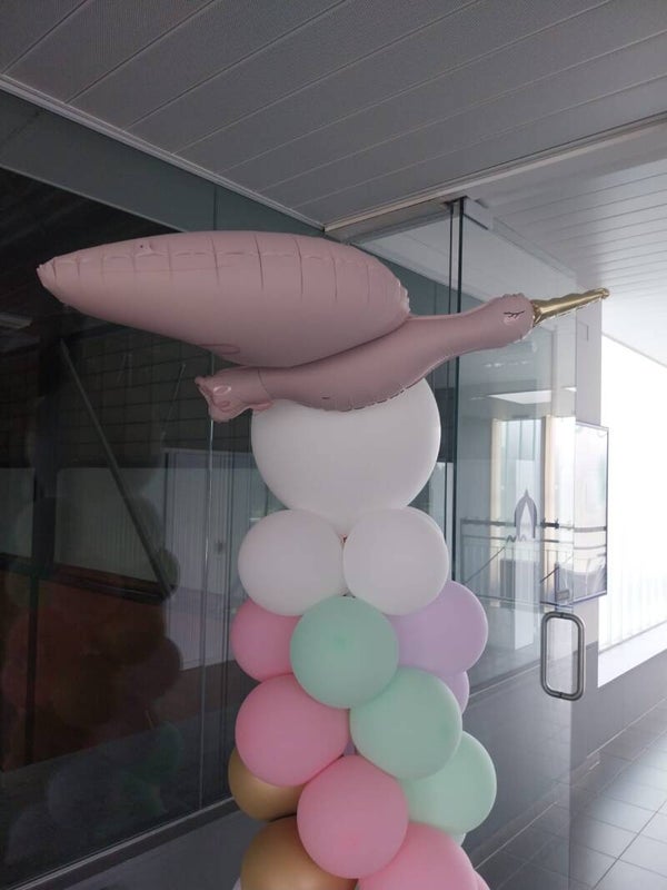 Zachtkleurige pilaar met folie girl ( boy ) op topballon.