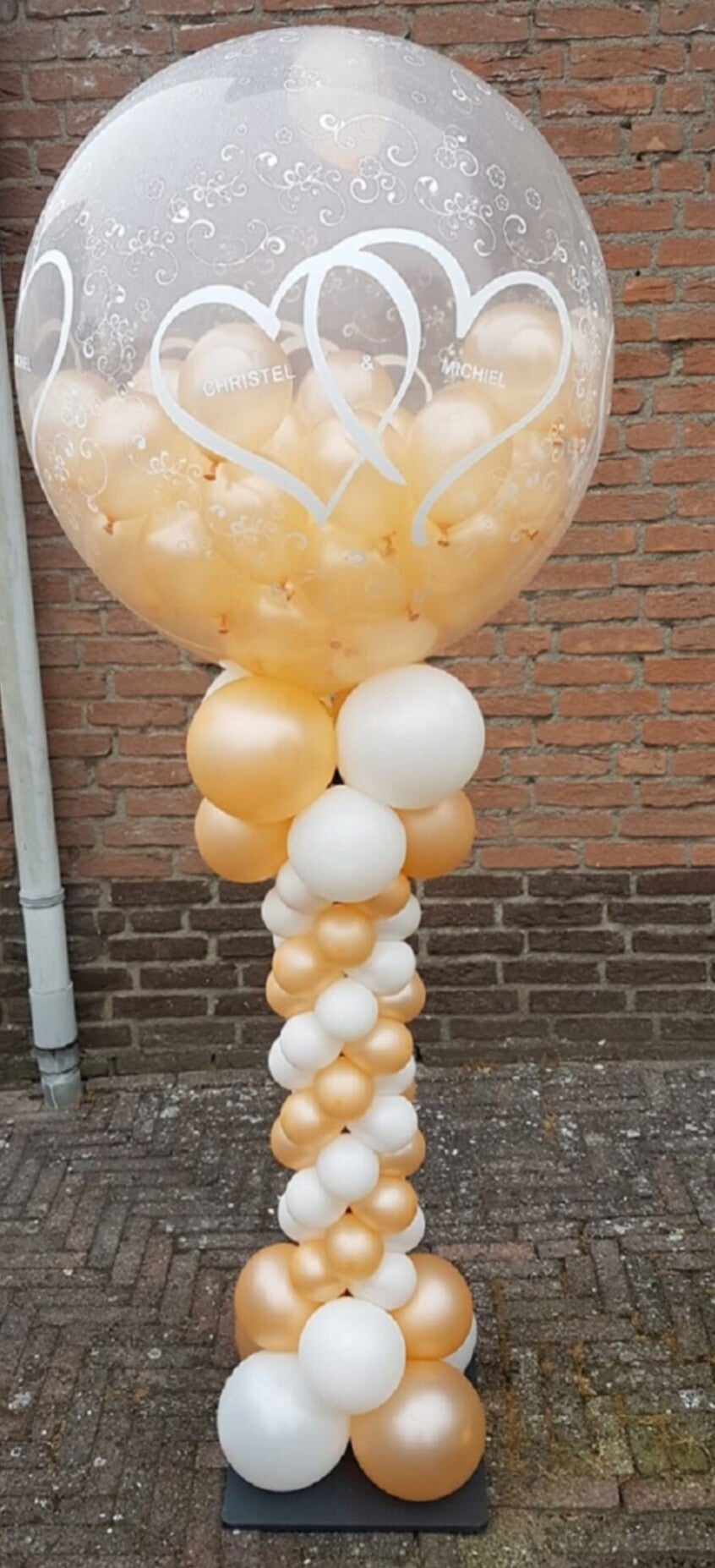 Pilaar met gevulde ballonnetjes,clear hartmotief.
