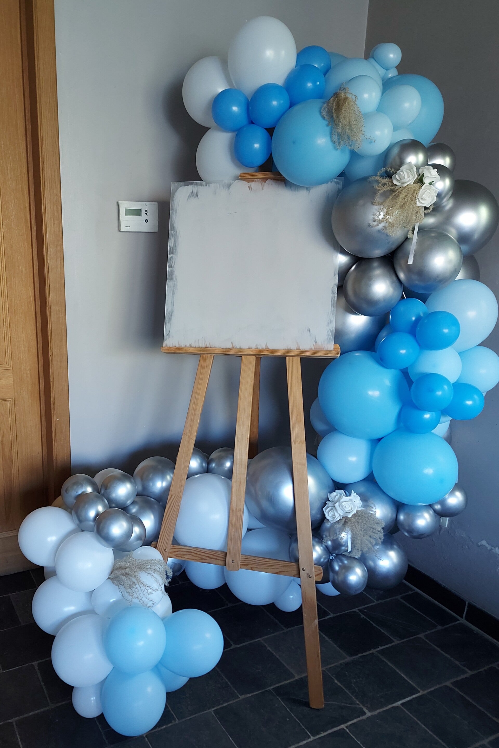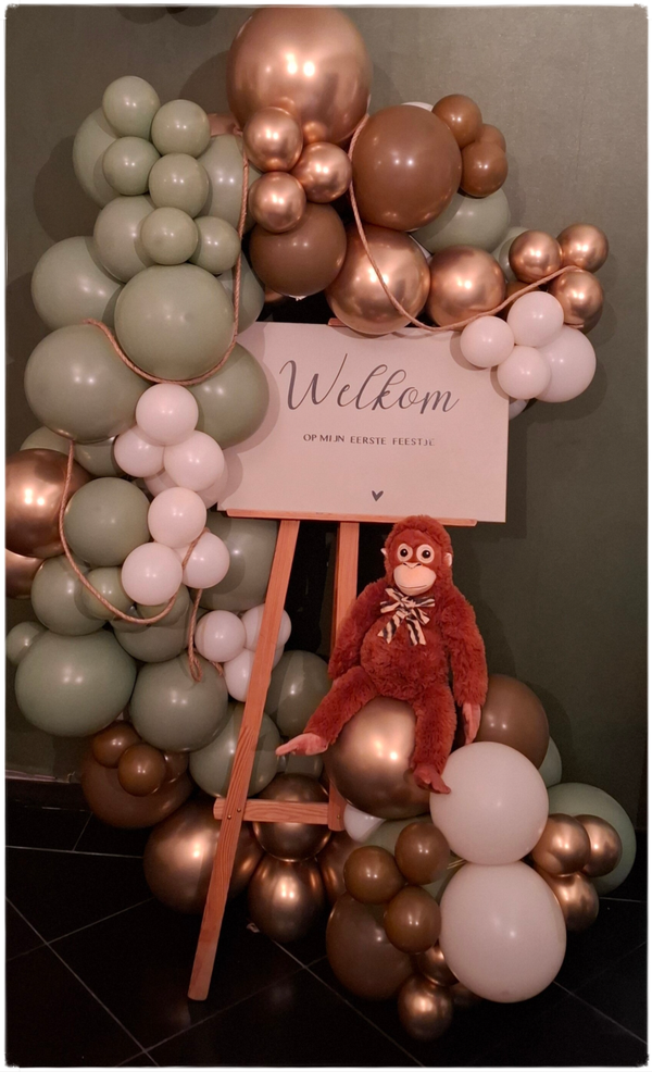 Sticker/ tekst op welkomstbord. ( blauw, rood, zwart, mat glas). Bord ter huur. Alsook deco pluche dieren en andere materialen als versiering.