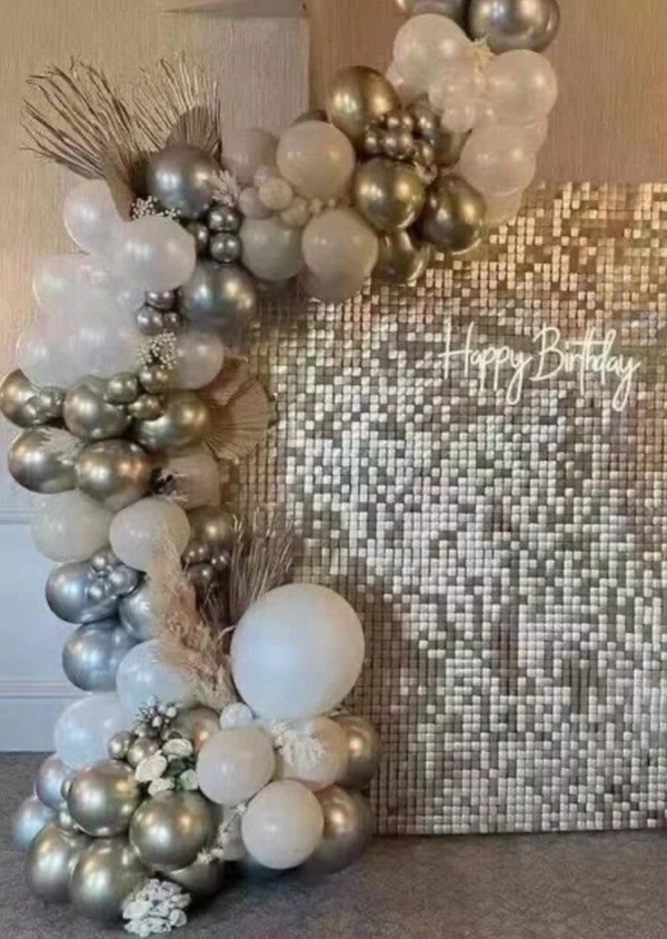 Nieuw. Champagnekleur. Prijs afhankelijk van afwerking ballonnen. Wand is 60 cm op 180 ( kan anders op vraag).