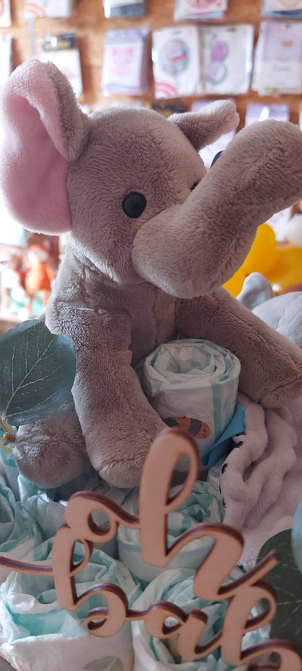 Vochtige doekjes knuffel olifantje / knuffeldoekje met rammelaar en bijtring.