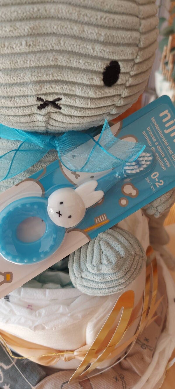 Nijntje knuffel, 2x sokhes, knisperdoekje, tandenborstel, slabbetje washandje( alles thema Nijntje)
