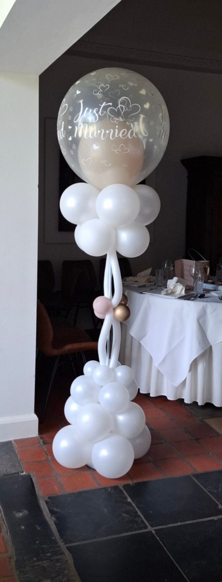 Dikke topballon van 80 cm met huwelijksprint. Totaal +/- 1m80a2m hoogte.