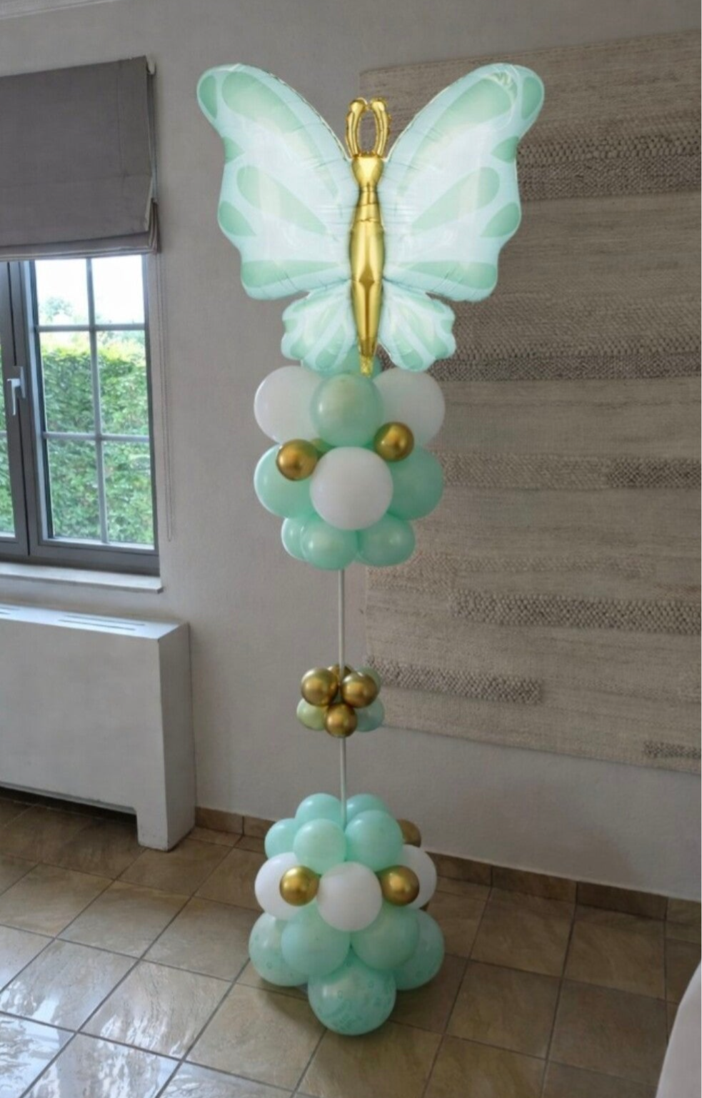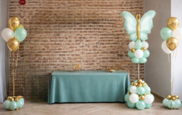 Pakket met twee trossen van 6 helium en vlinderpilaar - € 70,00