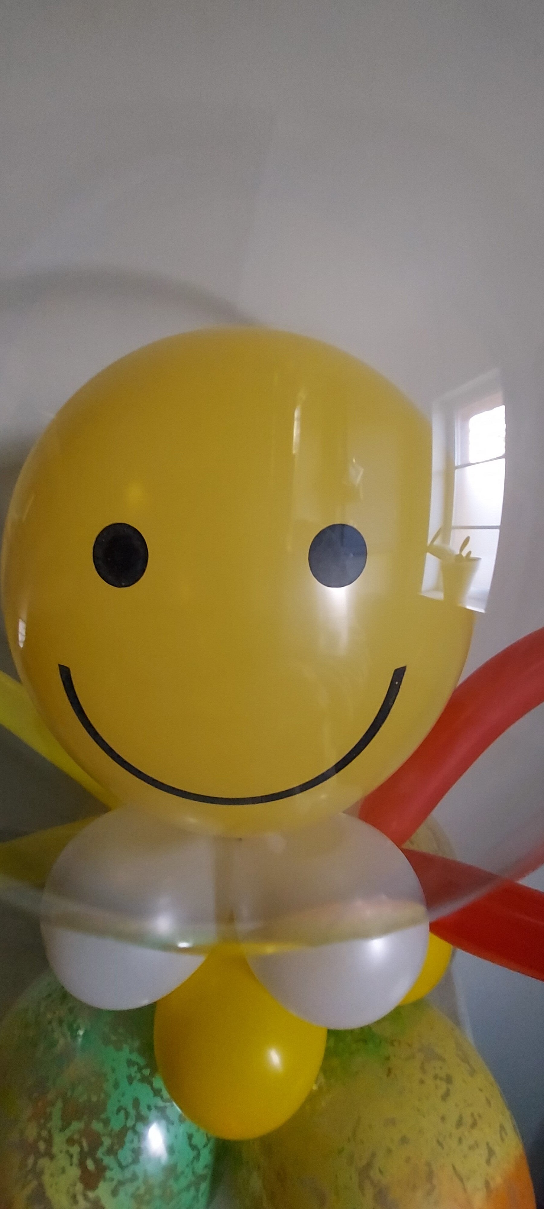 Klein stukje met smiley, kan als tafeldeco feestje of als cadeau verjaardag met cijfer( in plastiek verpakt)