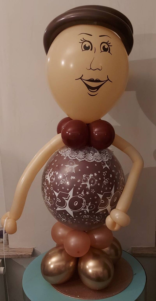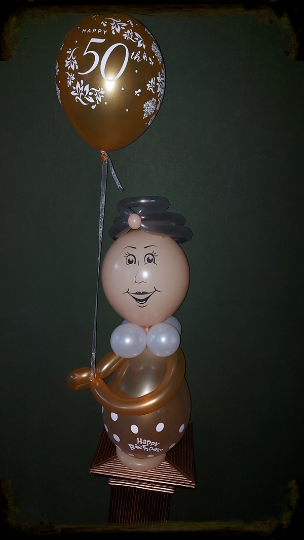 Vrouwtje met cijferballon ( 18")en folieballon in de hand= 26 euro