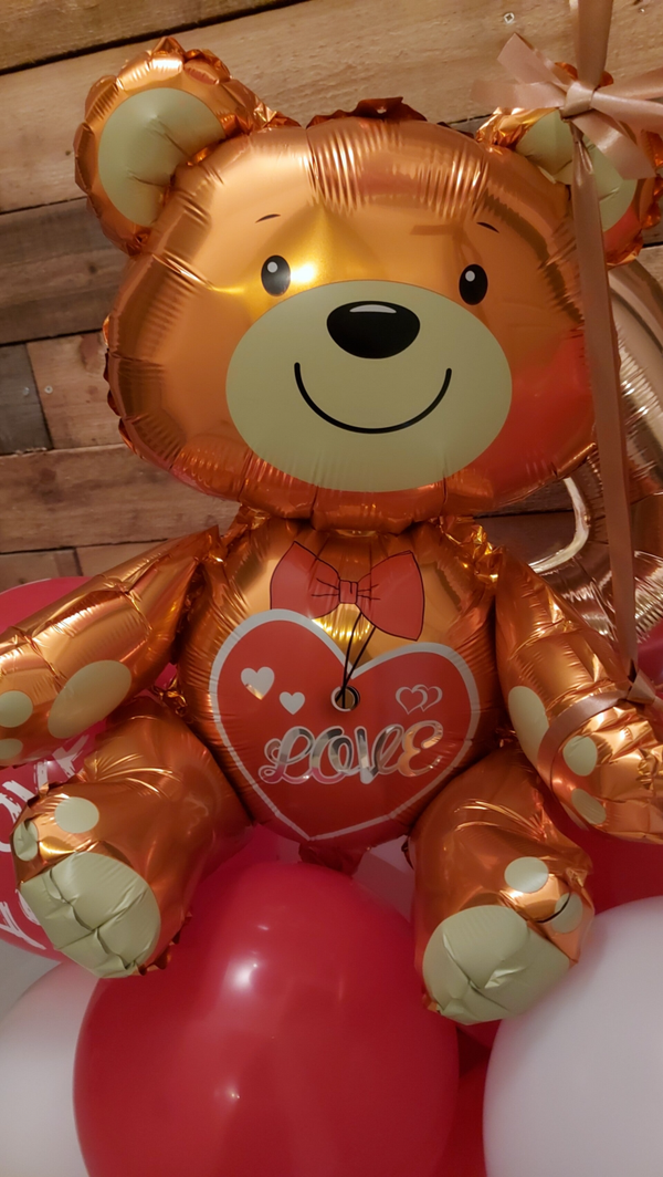 Balloncreaties met 3 heliumballonnen, 1 lichtgevende ballon. Beertje dat heel lang mooi blijft.