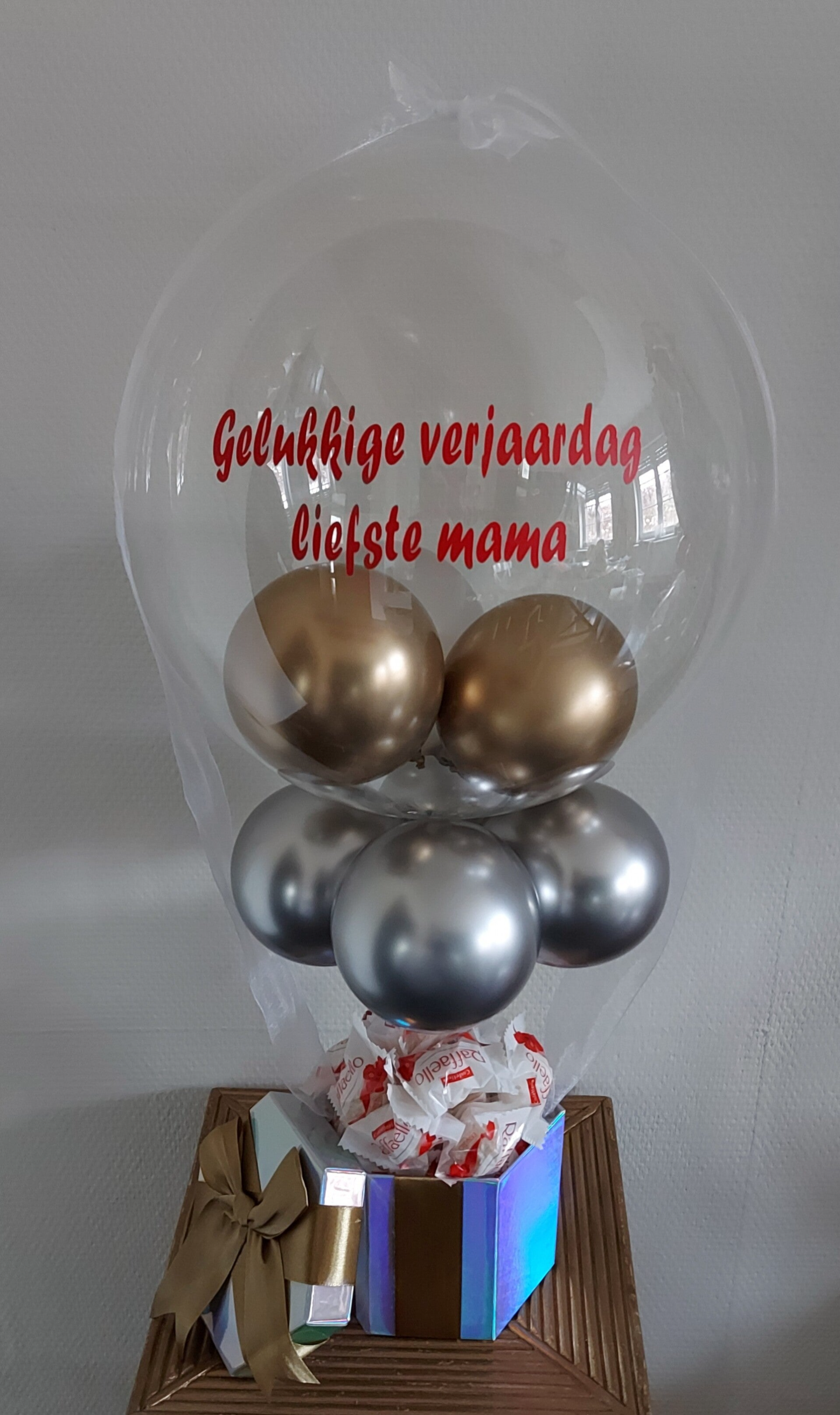 Bubbel met tekst, snoepdoosje ( Ferrero rocher of raffaello).